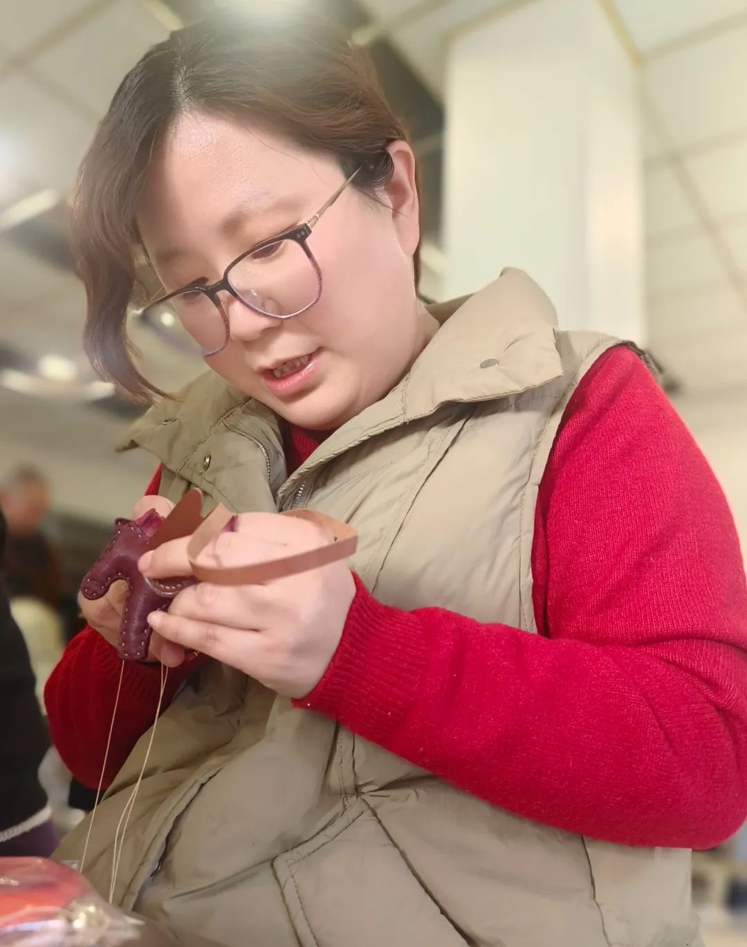 国药天伟开展“巧手匠心绽芳华”皮具挂件手工制作活动,在一针一线中勾勒出了可爱的“柿柿如意”、生动的“马到功成”。大家一边穿针引线,一边交流技巧心得,欢声笑语回荡在活动现场。此次活动,让女职工在繁忙的工作之余,感受到了节日的温暖与工会关怀。
