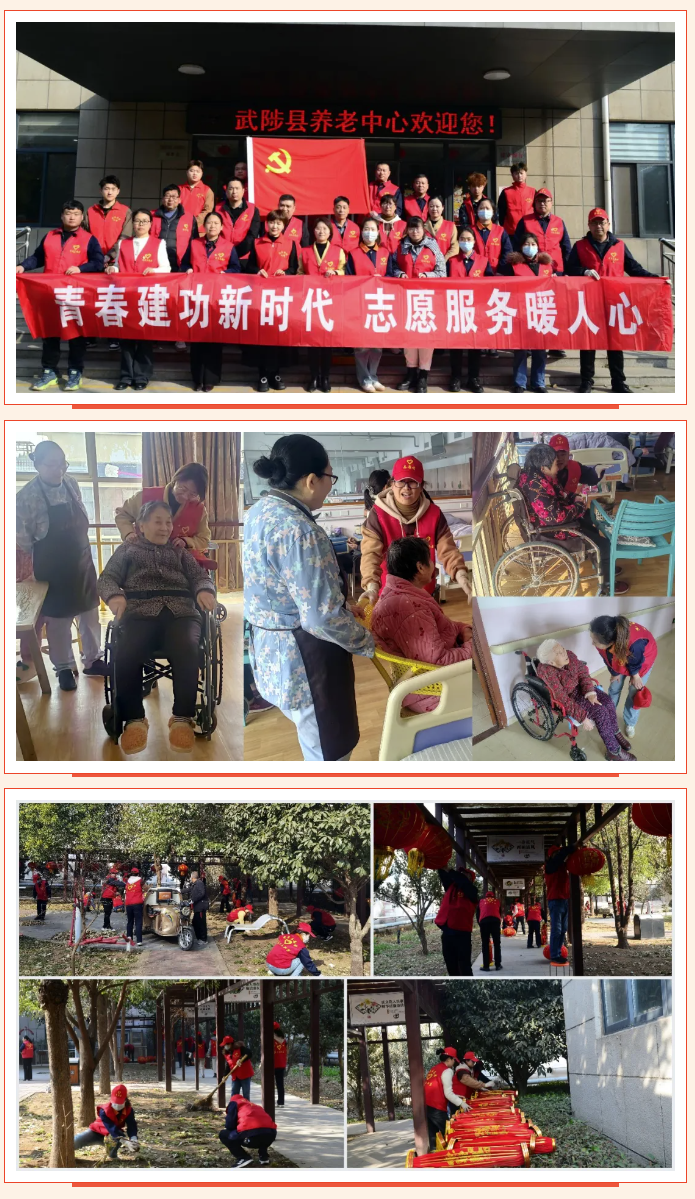 国药容生组织党员干部和入党积极分子走进武陟县养老中心,对室外场所、花园和走廊等环境卫生进行全方位清理,并为老人理发、捶背按摩、陪伴谈心,关切询问老人们身体健康、饮食起居等情况,还准备了丰富的文艺表演活动,歌曲、手语、舞蹈等精彩节目轮番上演,现场气氛温馨而美好。