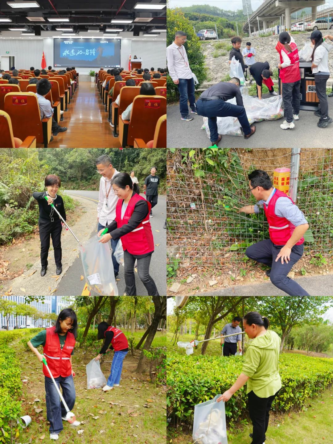 国药致君坪山组织青年志愿者共同观看纪录片《雷锋》,重温了雷锋同志无私奉献、感人至深的英雄事迹。随后前往马峦山和厂区门口开展环境清理,手持垃圾钳、环保袋等工具,将塑料瓶、塑料袋、纸屑等垃圾一一捡起,传承和发扬雷锋精神。